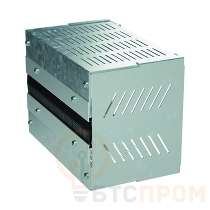 Коробка коммутационная предназначена для подключения внешних проводников 4-полюсных автоматических выключателей в литом корпусе при форме секционирования 4b на токи 100-250 А. Коробка устанавливается на монтажную плату функционального блока с обратной стороны. Имеет перфорацию для эффективного отвода тепла. Высота коробки 250 мм.