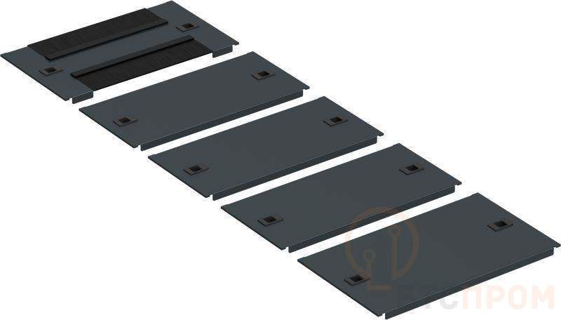 Используется для изолирования пространства в нижней части шкафа. Предотвращают попадание пыли во внутренне пространства шкафа а также повышают эффективность систем принудительного охлаждения. Элементы панели оснащены подпружиненными замками, что обеспечивает их простой и удобный монтаж без использования инструментов. Один из модулей панели оснащен щеточными вводами с суммарным окном просвета 480 см2, при необходимости увеличения емкости кабельного ввода имеется возможность замены любого глухого модуля панели на модуль с щеточным вводом. Монтаж панели основания возможем уже после ввода кабеля в шкаф.