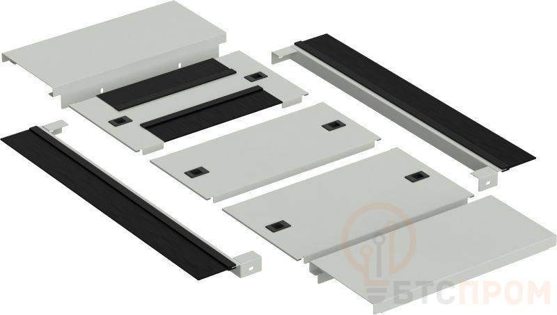 Используется для изолирования пространства в нижней части шкафа. Предотвращают попадание пыли во внутренне пространства шкафа а также повышают эффективность систем принудительного охлаждения. Элементы панели оснащены подпружиненными замками, что обеспечивает их простой и удобный монтаж без использования инструментов. Панель оснащена двумя щеточными вводами высокой емкости расположенными вдоль боковых частей шкафа, на всю глубину с суммарным окном просвета 480 см2, плюс дополнительно, один из модулей панели оснащен щеточными вводами с суммарным окном просвета 1200/1500 см2, при необходимости увеличения емкости кабельного ввода имеется возможность замены любого глухого модуля панели на модуль с щеточным вводом. Монтаж панели основания возможем уже после ввода кабеля в шкаф.
