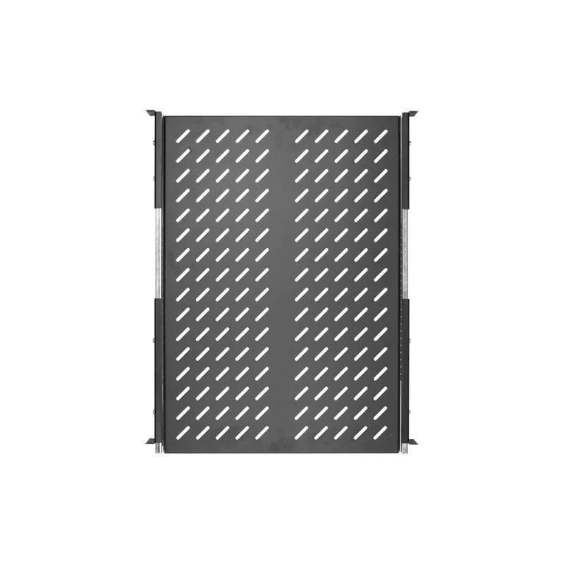 Выдвижная полка предназначена для установки или поддержки тяжелого оборудования в напольных телекоммуникационных шкафах и стойках, а также для оборудования, обслуживание которого подразумевает регулярное извлечение его из шкафа. В таком случае, выдвижная конструкция полки значительно облегчает доступ к необходимому оборудованию. Поверхность полки имеет перфорацию для лучшей вентиляции оборудования. Крепление осуществляется на двух парах 19" направляющих в четырех точках. Полка глубиной 400 мм, устанавливается в напольные шкафы и стойки, настенные шкафы в соответствии с таблицей совместимости аксессуаров.