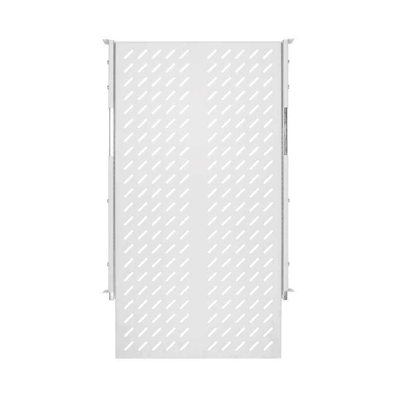 Выдвижная полка предназначена для установки или поддержки тяжелого оборудования в напольных телекоммуникационных шкафах и стойках, а также для оборудования, обслуживание которого подразумевает регулярное извлечение его из шкафа. В таком случае, выдвижная конструкция полки значительно облегчает доступ к необходимому оборудованию. Поверхность полки имеет перфорацию для лучшей вентиляции оборудования. Крепление осуществляется на двух парах 19" направляющих в четырех точках. Полка глубиной 400 мм, устанавливается в напольные шкафы и стойки, настенные шкафы в соответствии с таблицей совместимости аксессуаров.