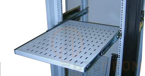 Модель имеет стандартную высоту 1U (44.45 мм) и глубину 1000 мм, что позволяет размещать на ней сетевое оборудование, коммутаторы, маршрутизаторы или блоки питания. Выдвижной механизм с фиксатором обеспечивает легкий и безопасный доступ к технике для обслуживания и ремонта. Полка рассчитана на значительную нагрузку до 30 кг.