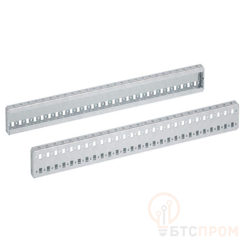 Рейки поперечные усиленные предназначены для организации тяжёлых шинных трасс и другого тяжёлого оборудования. Имеют две монтажные перфорированные плоскости. Монтаж осуществляется между рейками, установленными по глубине шкафа. Подходят для шкафа шириной 1200 мм.