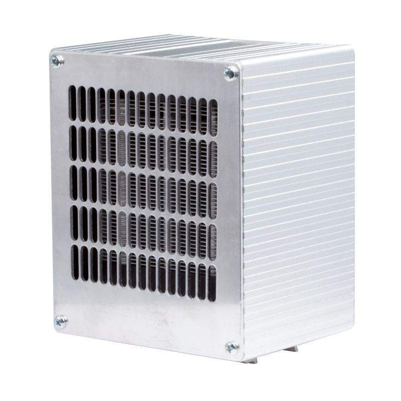 Обогреватель в алюминиевом корпусе с вентилятором мощностью 1500 Вт предназначен для поддержания необходимой температуры внутри электротехнического шкафа. Работает от напряжения 115 В с частотой 50/60 Гц. Обогреватель изготовлен из высококачественных материалов, обеспечивающих надежную работу. Степень защиты IP20. Благодаря своим компактным размерам 90 x 132 x 165 мм, этот обогреватель легко устанавливается в ограниченном пространстве. Рабочий диапазон температур от –45 до +70 ?C делает его подходящим для использования в суровых условиях эксплуатации. Обогреватель оснащен нагревательным элементом РТС-типа, что обеспечивает стабильную и долговечную работу.
