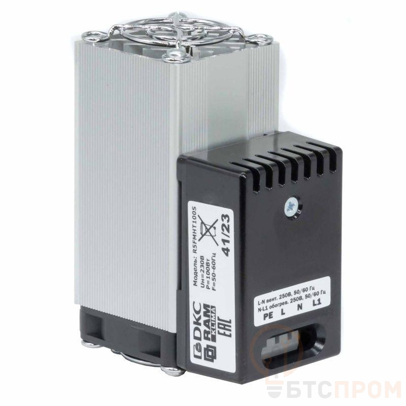 Компактный обогреватель с вентилятором мощностью 100 Вт предназначен для поддержания необходимой температуры внутри электротехнического шкафа. Питающее напряжение для нагревателя 230 В с частотой 50/60 Гц. Обогреватель изготовлен из высококачественных материалов, обеспечивающих надежную работу. Степень защиты IP20. Благодаря своим компактным размерам 41 x 66 x 97 мм, этот обогреватель легко устанавливается в ограниченном пространстве. Рабочий диапазон температур от –25 до +55 ?C делает его подходящим для использования в суровых условиях эксплуатации. Обогреватель оснащен резистивным нагревательным элементом, что обеспечивает стабильную и долговечную работу.