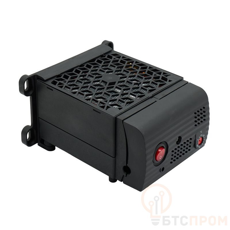 Обогреватель в пластиковом защитном кожухе с вентилятором и термостатом мощностью 800 Вт предназначен для поддержания необходимой температуры внутри электротехнического шкафа. Работает от напряжения 115 В с частотой 50/60 Гц. Изготовлен из прочного пластика, устойчивого к воздействию окружающей среды. Степень защиты – IP20. Компактные размеры 182x120x160 мм позволяют легко установить обогреватель в ограниченном пространстве. Рабочий диапазон температур от –45 до +70 ?C делает его подходящим для использования в суровых условиях эксплуатации. Обогреватель оснащен нагревательным элементом РТС-типа, что обеспечивает стабильную и долговечную работу.