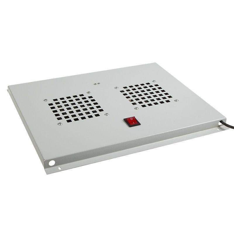 Потолочный вентиляторный модуль используется для обеспечения принудительной вытяжки и притока воздуха к внутреннему пространству шкафа, а также для фильтрации подаваемого воздуха. Устанавливается в верхнюю часть шкафов глубиной 600 мм. В конструкции предусмотрено 2 вентилятора, включение/выключение которых осуществляется посредством кнопки, находящейся на корпусе устройства. Модуль оснащен шнуром, через который устройство подключается к сети и обеспечивается электропитанием. Покрытие выполнено краской серого цвета. Питание – 220/240В ~, 50/60Гц. Воздушный поток – 350м3/ч. Скорость вращения – 2500 об/мин. Питание - 220/240В ~, 50/60Гц. Потребляемая мощность - 50Вт. Производительность - 350м3/ч. Скорость вращения - 2500об/мин. Уровень шума - 39Дб.