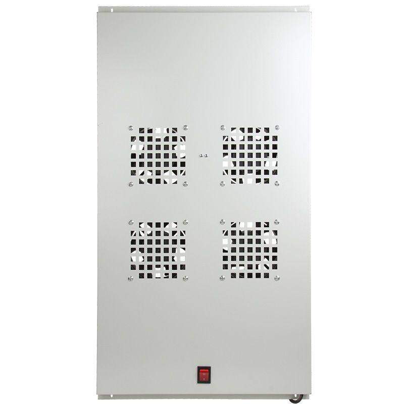 Потолочный вентиляторный модуль используется для обеспечения принудительной вытяжки и притока воздуха к внутреннему пространству шкафа, а также для фильтрации подаваемого воздуха. Устанавливается на направляющие 19” шкафов. Устанавливается в верхнюю часть шкафов глубиной 1000 мм. В конструкции предусмотрено 4 вентилятора, включение/выключение которых осуществляется посредством кнопки, находящейся на корпусе устройства. Модуль оснащен шнуром, через который устройство подключается к сети и обеспечивается электропитанием. Покрытие выполнено краской серого цвета. Питание - 220/240В ~, 50/60Гц. Потребляемая мощность - 100Вт. Производительность - 700м3/ч. Скорость вращения - 2500об/мин. Уровень шума - 42Дб. Питание – 220/240В ~, 50/60Гц. Воздушный поток – 700 м3/ч. Скорость вращения – 2500 об/мин.
