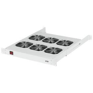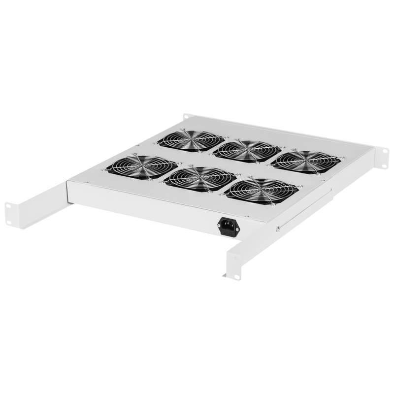 Вентиляторная полка предназначена для создания дополнительного потока воздуха в местах сосредоточения активного оборудования в телекоммуникационном шкафу. Вентиляторные полки можно устанавливать в напольные шкафы и стойки в соответствии с таблицей совместимости аксессуаров. Питание вентиляторной полки осуществляется с помощью подключения шнура питания к сети с напряжением 220 В, 50 Гц. Разъем питания на вентиляторном блоке типа IEC-60320 C14. Вентиляторная полка выполнена в 19” стандарте. Несущая конструкция вентиляторной полки выполнена из 2 мм стали. Вентиляторы закрыты решетками с обеих сторон. Включение/выключение полки осуществляются пользователем. Полка крепятся к направляющим с помощью комплекта крепежа. Крепеж не входит в комплект поставки. Антикоррозионное покрытие выполнено ударопрочной порошковой краской черного цвета. Вентиляторная полка на 6 вентиляторов, глубиной 520 мм, снабжена дополнительными кронштейнами для крепления за заднюю часть. Кронштейны можно регулировать по вылету для подстройки под глубину направляющих шкафа.