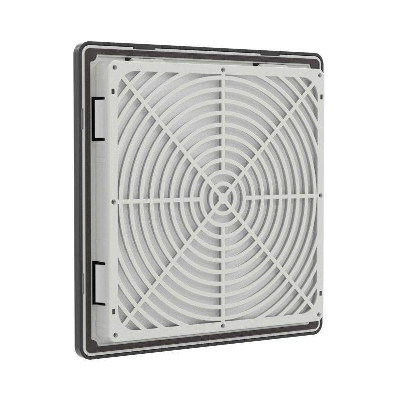 Вентиляционные решетки RF изготовлены в России. Они обладают высоким качеством и надежностью, могут применяться даже в тяжелых условиях эксплуатации. Изготовлены из устойчивого к УФ и не поддерживающего горение АБС–пластика и поликарбоната. Возможна установка на улице без навеса. Степень защиты IP54, опционально повышение до IP56. Применяются для создания пассивной вентиляции или в сочетании с настенными или потолочными вентиляторами. Монтаж осуществляется без использования инструмента при помощи защелок (опционально можно зафиксировать винтами, например, при вибрационных нагрузках). В комплекте - воздушный фильтр с возможностью быстрой замены без инструмента. Внешние размеры 205х205 мм, размер монтажного выреза 177,5х177,5 мм. Цвет - черный, RAL 9005.