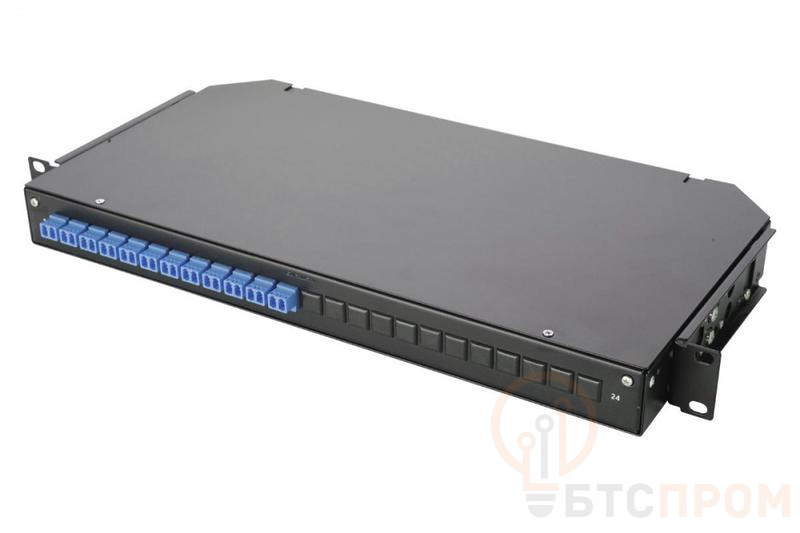 Панель оптическая 47C-24 19дюйм 1U фиксир. корпус на 24 адаптера 8 дуплекс LC адаптеров OS2 Eurolan 47C-24-S2-2L-08-11BL