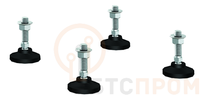 Регулируемые ножки предназначены для компенсации неровностей пола при установке 19" IT-корпусов ДКС серии CQE. Диапазон регулирования от 20 до 50 мм. Полная высота ножки 70 мм. Максимальная статическая нагрузка на одну ножку - 300 кг. Присоединительная резьба М12. Ножки поставляются в комплекте из 4 штук вместе с необходимыми монтажными аксессуарами. Они изготовлены из стального прутка с нарезанной резьбой М12 и пластиковых опор. Ножки вворачиваются в гайки, ввареные в основание шкафа и фиксируются контргайкой, входящей в комплект.