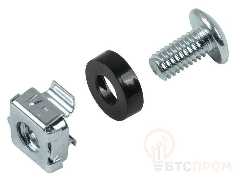 Набор винт-шайба-гайка необходим для крепления оборудования на монтажные профили шкафов и стоек. Гайки в наборе имеют квадратную форму и специальные "лапки", прочно фиксирующие их в квадратном отверстии монтажных профилей, что облегчает установку оборудования, т.к. нет необходимости держать гайку руками. Также в наборе предусмотрены пластиковые шайбы, предотвращающие повреждение оборудования при затягивании винтов в гайку.