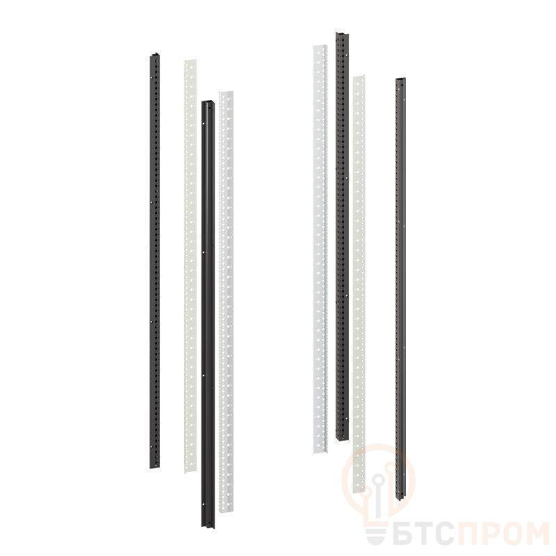 Вертикальные стойки являются основными элементами силового каркаса напольного 19" IT CQE наряду с дном и крышей. Конструкция профиля стоек имеет 6 ребер жесткости. Собранный корпус выдерживает распределенную нагрузку до 1500 кг. Стойки имеют перфорацию с шагом 25 мм. Комплектация - 4 шт. Монтажные аксессуары в комплект не входят. Высота - 2200 мм. Материал - сталь толщиной 1,5 мм. Цвет - черный, RAL 9005. Стойки устанавливаются по углам комплекта "крыша – основание", присоединяются к ним с помощью резьбовых соединений, образуя несущий каркас. Установка вертикальных стоек строго перпендикулярно плоскостям основания и крыши обеспечивается конструктивными элементами, выполненными совместно с крышей и основанием. В комплекте поставки идут четыре L-образных 19" профиля 48U высотой, теперь их не надо заказывать отдельно.