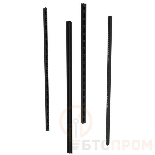Вертикальные стойки являются основными элементами силового каркаса напольного 19" IT-корпуса ДКС серии CQE наряду с дном и крышей. Конструкция профиля стоек имеет 6 ребер жесткости. Собранный корпус выдерживает распределенную нагрузку до 1500 кг. Стойки имеют перфорацию с шагом 25 мм. Комплектация - 4 шт. Монтажные аксессуары в комплект не входят. Высота - 1800 мм. Материал - сталь толщиной 1,5 мм. Цвет - черный, RAL 9005. Стойки устанавливаются по углам комплекта "крыша – основание", присоединяются к ним с помощью резьбовых соединений, образуя несущий каркас. Установка вертикальных стоек строго перпендикулярно плоскостям основания и крыши обеспечивается конструктивными элементами, выполненными совместно с крышей и основанием.