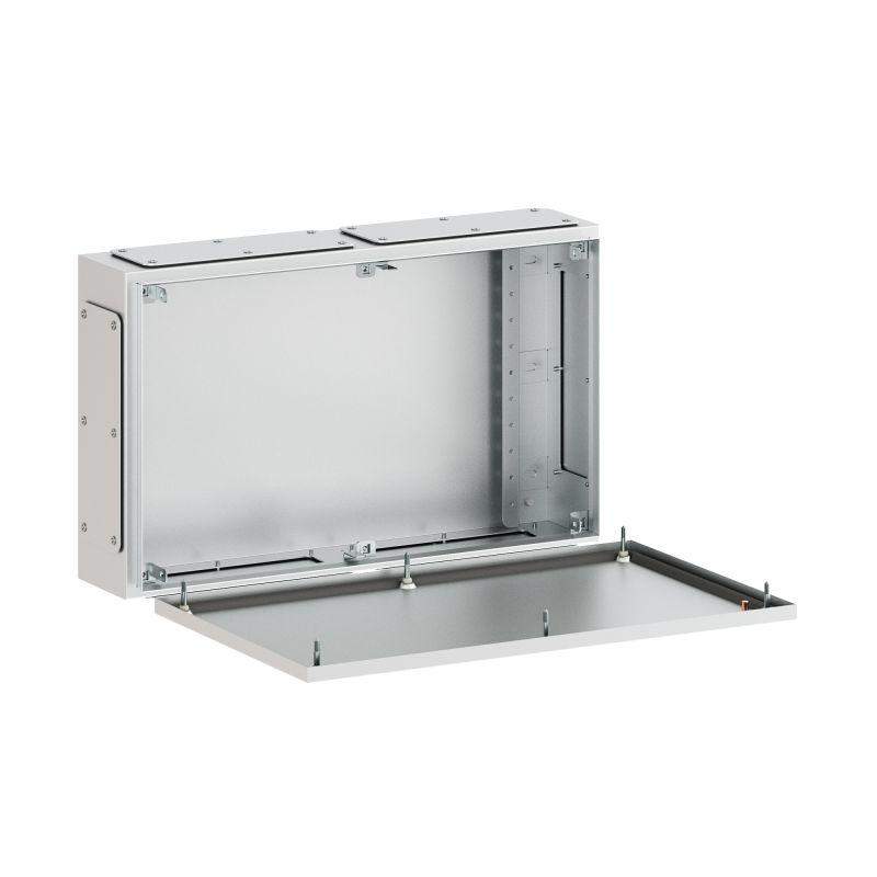Клеммные корпуса SDE используются в качестве соединительных и разветвительных коробок, пультов управления, небольших корпусов автоматизации, а также для размещения различных индикаторных и контрольных устройств. Корпус, крышка и фланцы изготавливаются из стали толщиной 1,2 мм с атмосферостойким порошковым покрытием, цвет RAL7035. Степень защиты IP66, ударопрочность IK10, сейсмостойкость 9 баллов по шкале MSK-64, климатическое исполнение УХЛ1, ОМ2, ОМ3, группа горючести Г1. Комплект поставки: корпус, крышка, 4 сплошных фланца для ввода кабеля, комплект заземления без проводов. Габариты 500x300x120 (ВхШхГ) мм.