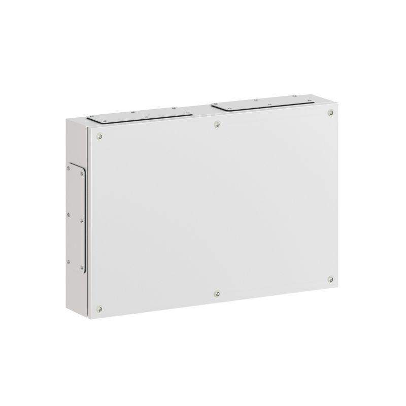 Клеммные корпуса SDE используются в качестве соединительных и разветвительных коробок, пультов управления, небольших корпусов автоматизации, а также для размещения различных индикаторных и контрольных устройств. Корпус, крышка и фланцы изготавливаются из стали толщиной 1,2 мм с атмосферостойким порошковым покрытием, цвет RAL7035. Степень защиты IP66, ударопрочность IK10, сейсмостойкость 9 баллов по шкале MSK-64, климатическое исполнение УХЛ1, ОМ2, ОМ3, группа горючести Г1. Комплект поставки: корпус, крышка, 4 сплошных фланца для ввода кабеля, комплект заземления без проводов. Габариты 600x400x120 (ВхШхГ) мм.