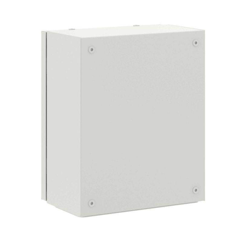 Навесные корпуса STE предназначены для систем автоматизации и распределения электроэнергии. Корпус, дверь, фланец STE изготавливаются из стали толщиной 1,5 мм с атмосферостойким порошковым покрытием, цвет RAL7035. Монтажная плата - из оцинкованной стали 1,8 мм. Корпуса выполнены по технологии сварки из единого листа металла, что обеспечивает высокую нагрузочную способность и защиту от вибраций. Степень защиты IP66, ударопрочность IK10, сейсмостойкость 9 баллов по шкале MSK-64, климатическое исполнение УХЛ1, ОМ2, ОМ3, группа горючести Г1. Комплект поставки: корпус, дверь реверсивная, монтажная плата, поворотный замок 1 шт., сплошной фланец для ввода кабеля 1 шт., комплект заземления с проводами заземления. Габариты 300x250x150 (ШхВхГ) мм.