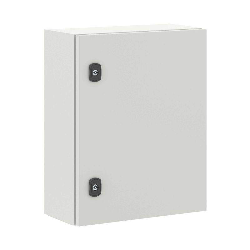Навесные корпуса STE предназначены для систем автоматизации и распределения электроэнергии. Корпус, дверь, фланец STE изготавливаются из стали толщиной 1,5 мм с атмосферостойким порошковым покрытием, цвет RAL7035. Монтажная плата - из оцинкованной стали 1,8 мм. Корпуса выполнены по технологии сварки из единого листа металла, что обеспечивает высокую нагрузочную способность и защиту от вибраций. Степень защиты IP66, ударопрочность IK10, сейсмостойкость 9 баллов по шкале MSK-64, климатическое исполнение УХЛ1, ОМ2, ОМ3, группа горючести Г1. Комплект поставки: корпус, дверь реверсивная, монтажная плата, дверные рейки, поворотный замок 2 шт., сплошной фланец для ввода кабеля 1 шт., комплект заземления с проводами заземления. Габариты 500x400x200 (ШхВхГ) мм.