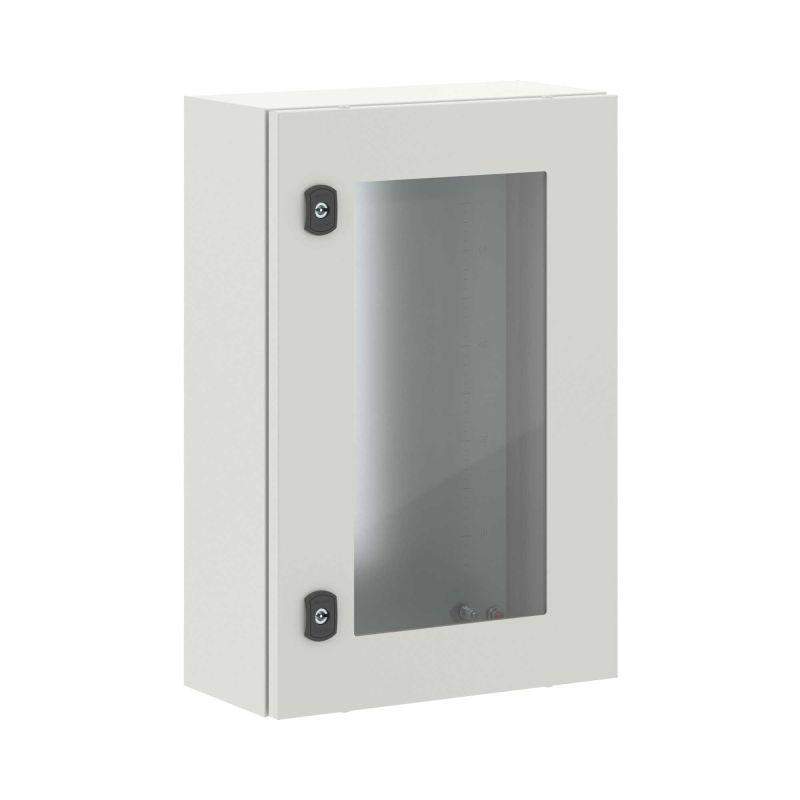 Навесные корпуса STEX предназначены для систем автоматизации и распределения электроэнергии. Корпус, дверь, фланец STEX изготавливаются из стали толщиной 1,5 мм с атмосферостойким порошковым покрытием, цвет RAL7035. Монтажная плата - из оцинкованной стали 1,8 мм. Безопасное закаленное стекло толщиной 5 мм. Корпуса выполнены по технологии сварки из единого листа металла, что обеспечивает высокую нагрузочную способность и защиту от вибраций. Степень защиты IP66, ударопрочность IK10, сейсмостойкость 9 баллов по шкале MSK-64, климатическое исполнение УХЛ1, ОМ2, ОМ3, группа горючести Г1. Комплект поставки: корпус, дверь реверсивная, монтажная плата, дверные рейки, поворотный замок 2 шт., сплошной фланец для ввода кабеля 1 шт., комплект заземления с проводами заземления. Габариты 600x400x200 (ШхВхГ) мм.