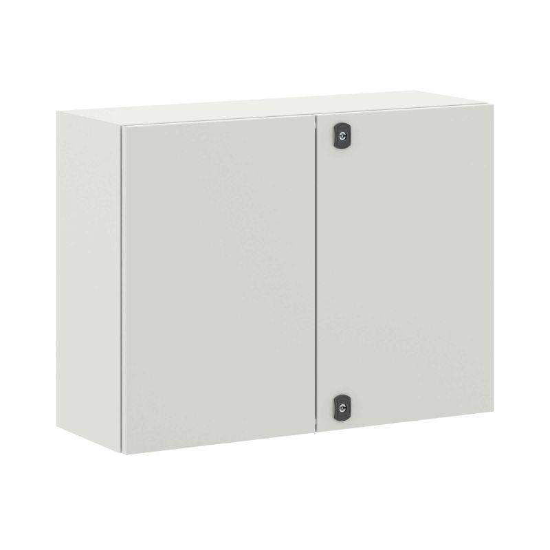 Навесные корпуса серии STE предназначены для систем автоматизации и распределения электроэнергии. Корпус, дверь, фланец серии STE изготавливаются из листовой стали толщиной 1,5 мм с атмосферостойким порошковым покрытием, цвет RAL7035. Монтажная плата изготовлена из оцинкованной стали толщиной 1,8 мм. Степень защиты IP55, ударопрочность IK10, сейсмостойкость 9 баллов по шкале MSK-64, климатическое исполнение УХЛ1, ОМ2, ОМ3, группу горючести согласно Г1. Комплект поставки: корпус, двустворчатая дверь, монтажная плата с двунаправленной разметкой, дверные рейки, поворотный замок 2 шт., сплошной фланец для ввода кабеля 2 шт., комплект заземления с проводами заземления. Габариты 600x800x300 (ШхВхГ) мм.