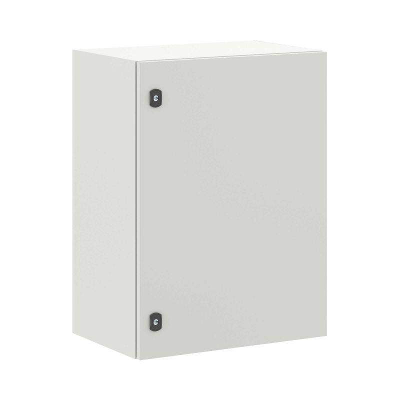 Навесные корпуса серии STE предназначены для систем автоматизации и распределения электроэнергии. Корпус, дверь, фланец серии STE изготавливаются из листовой стали толщиной 1,5 мм с атмосферостойким порошковым покрытием, цвет RAL7035. Монтажная плата изготовлена из оцинкованной стали толщиной 1,8 мм. Степень защиты IP66, ударопрочность IK10, сейсмостойкость 9 баллов по шкале MSK-64, климатическое исполнение УХЛ1, ОМ2, ОМ3, группа горючести Г1. Комплект поставки: корпус, дверь реверсивная, монтажная плата с двунаправленной разметкой, дверные рейки, поворотный замок 2 шт., сплошной фланец для ввода кабеля 1 шт., комплект заземления с проводами заземления. Габариты 800x600x400 (ШхВхГ) мм.