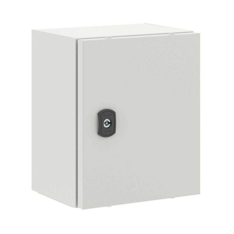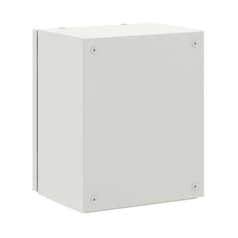 Навесные корпуса STE предназначены для систем автоматизации и распределения электроэнергии. Корпус, дверь, фланец STE изготавливаются из стали толщиной 1,5 мм с атмосферостойким порошковым покрытием, цвет RAL7035. Монтажная плата - из оцинкованной стали 1,8 мм. Корпуса выполнены по технологии сварки из единого листа металла, что обеспечивает высокую нагрузочную способность и защиту от вибраций. Степень защиты IP66, ударопрочность IK10, сейсмостойкость 9 баллов по шкале MSK-64, климатическое исполнение УХЛ1, ОМ2, ОМ3, группа горючести Г1. Комплект поставки: корпус, дверь реверсивная, монтажная плата, поворотный замок 1 шт., сплошной фланец для ввода кабеля 1 шт., комплект заземления с проводами заземления. Габариты 300x250x200 (ШхВхГ) мм.