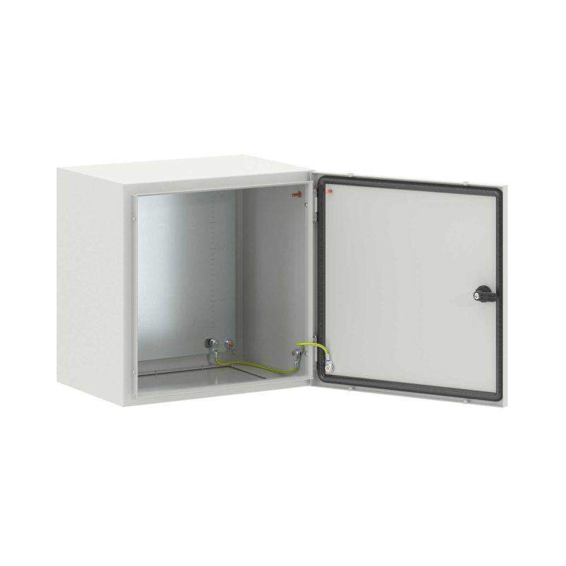 Навесные корпуса серии STE предназначены для систем автоматизации и распределения электроэнергии. Корпус, дверь, фланец серии STE изготавливаются из листовой стали толщиной 1,5 мм с атмосферостойким порошковым покрытием, цвет RAL7035. Монтажная плата изготовлена из оцинкованной стали толщиной 1,8 мм. Степень защиты IP66, ударопрочность IK10, сейсмостойкость 9 баллов по шкале MSK-64, климатическое исполнение УХЛ1, ОМ2, ОМ3, группа горючести Г1. Комплект поставки: корпус, дверь реверсивная, монтажная плата с двунаправленной разметкой, поворотный замок 1 шт., сплошной фланец для ввода кабеля 1 шт., комплект заземления с проводами заземления. Габариты 400x400x300 (ШхВхГ) мм.