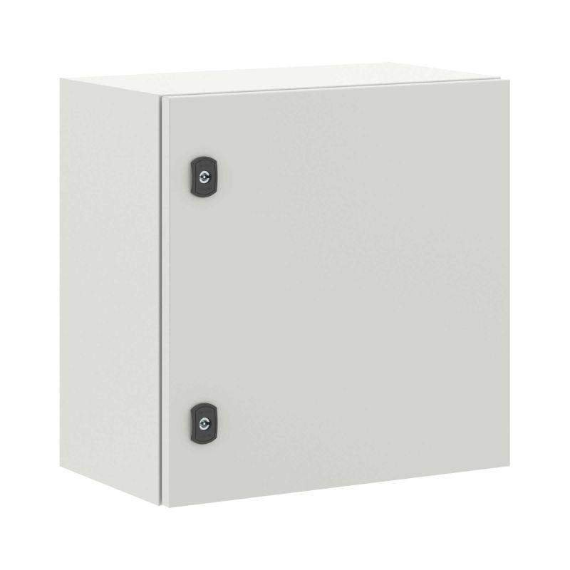 Навесные корпуса серии STE предназначены для систем автоматизации и распределения электроэнергии. Корпус, дверь, фланец серии STE изготавливаются из листовой стали толщиной 1,5 мм с атмосферостойким порошковым покрытием, цвет RAL7035. Монтажная плата изготовлена из оцинкованной стали толщиной 1,8 мм. Степень защиты IP66, ударопрочность IK10, сейсмостойкость 9 баллов по шкале MSK-64, климатическое исполнение УХЛ1, ОМ2, ОМ3, группа горючести Г1. Комплект поставки: корпус, дверь реверсивная, монтажная плата с двунаправленной разметкой, дверные рейки, поворотный замок 2 шт., сплошной фланец для ввода кабеля 1 шт., комплект заземления с проводами заземления. Габариты 500x500x300 (ШхВхГ) мм.