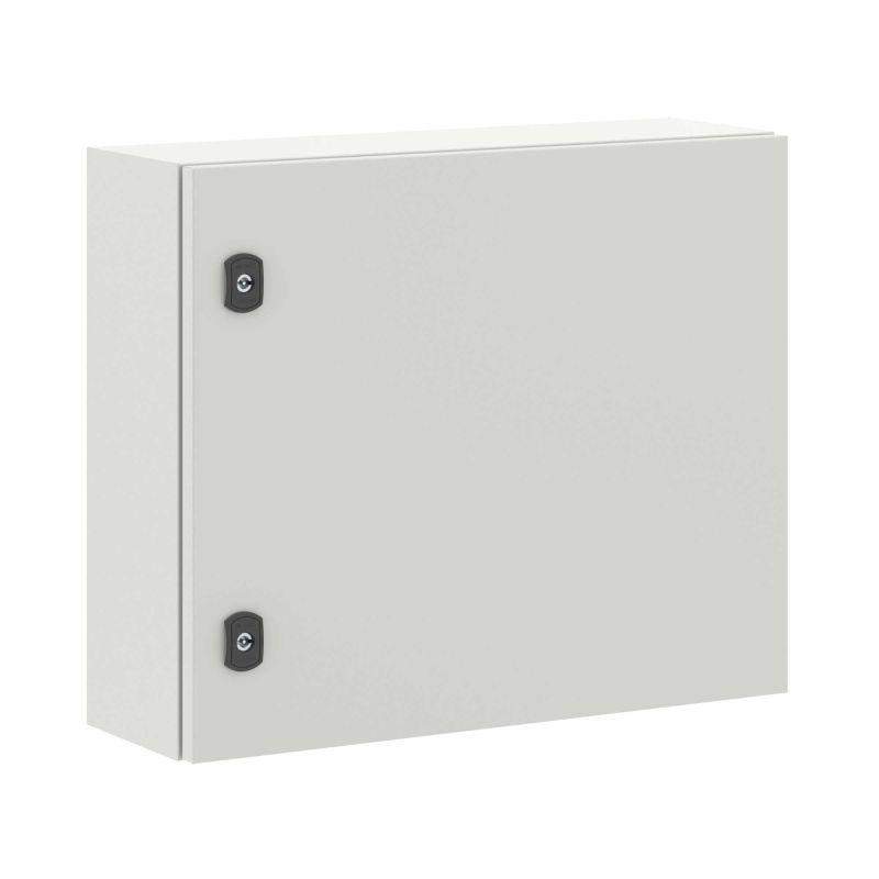 Навесные корпуса STE предназначены для систем автоматизации и распределения электроэнергии. Корпус, дверь, фланец STE изготавливаются из стали толщиной 1,5 мм с атмосферостойким порошковым покрытием, цвет RAL7035. Монтажная плата - из оцинкованной стали 1,8 мм. Корпуса выполнены по технологии сварки из единого листа металла, что обеспечивает высокую нагрузочную способность и защиту от вибраций. Степень защиты IP66, ударопрочность IK10, сейсмостойкость 9 баллов по шкале MSK-64, климатическое исполнение УХЛ1, ОМ2, ОМ3, группа горючести Г1. Комплект поставки: корпус, дверь реверсивная, монтажная плата, дверные рейки, поворотный замок 2 шт., сплошной фланец для ввода кабеля 1 шт., комплект заземления с проводами заземления. Габариты 500x600x200 (ШхВхГ) мм.