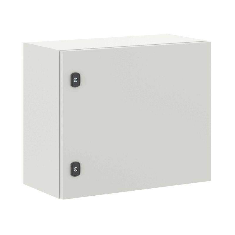 Навесные корпуса серии STE предназначены для систем автоматизации и распределения электроэнергии. Корпус, дверь, фланец серии STE изготавливаются из листовой стали толщиной 1,5 мм с атмосферостойким порошковым покрытием, цвет RAL7035. Монтажная плата изготовлена из оцинкованной стали толщиной 1,8 мм. Степень защиты IP66, ударопрочность IK10, сейсмостойкость 9 баллов по шкале MSK-64, климатическое исполнение УХЛ1, ОМ2, ОМ3, группа горючести Г1. Комплект поставки: корпус, дверь реверсивная, монтажная плата с двунаправленной разметкой, дверные рейки, поворотный замок 2 шт., сплошной фланец для ввода кабеля 1 шт., комплект заземления с проводами заземления. Габариты 500x600x300 (ШхВхГ) мм.