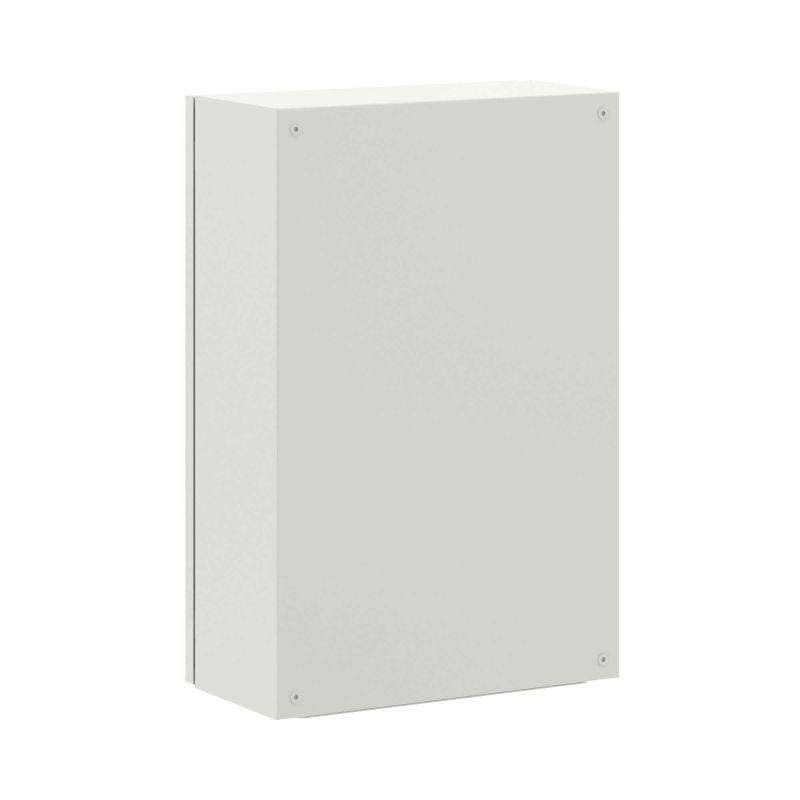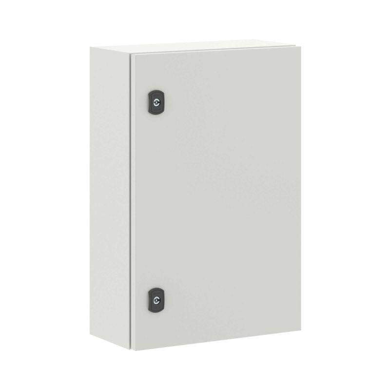 Навесные корпуса STE предназначены для систем автоматизации и распределения электроэнергии. Корпус, дверь, фланец STE изготавливаются из стали толщиной 1,5 мм с атмосферостойким порошковым покрытием, цвет RAL7035. Монтажная плата - из оцинкованной стали 1,8 мм. Корпуса выполнены по технологии сварки из единого листа металла, что обеспечивает высокую нагрузочную способность и защиту от вибраций. Степень защиты IP66, ударопрочность IK10, сейсмостойкость 9 баллов по шкале MSK-64, климатическое исполнение УХЛ1, ОМ2, ОМ3, группа горючести Г1. Комплект поставки: корпус, дверь реверсивная, монтажная плата, дверные рейки, поворотный замок 2 шт., сплошной фланец для ввода кабеля 1 шт., комплект заземления с проводами заземления. Габариты 600x400x200 (ШхВхГ) мм