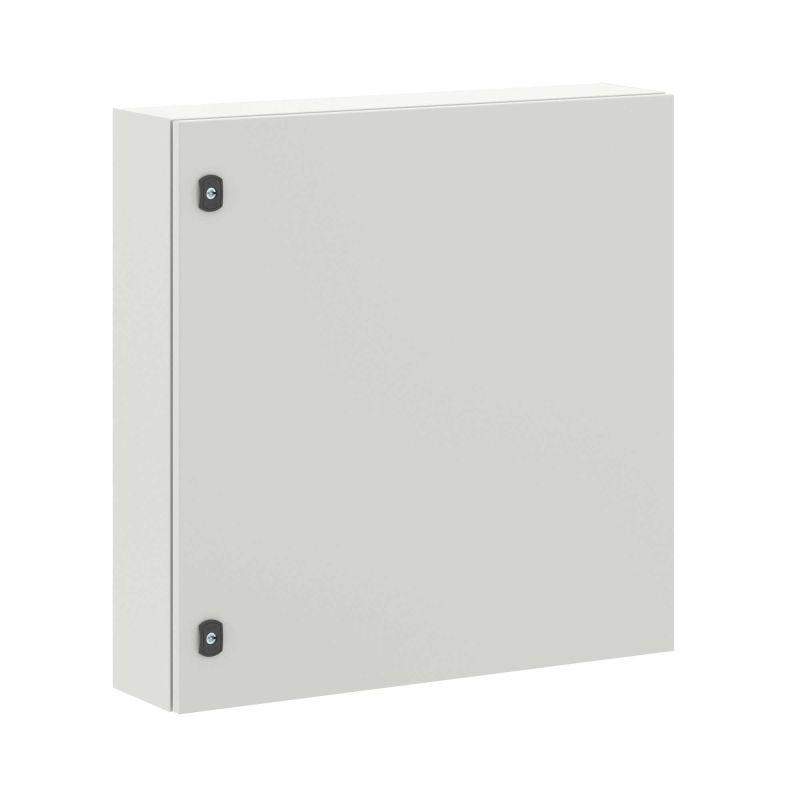 Навесные корпуса STE предназначены для систем автоматизации и распределения электроэнергии. Корпус, дверь, фланец STE изготавливаются из стали толщиной 1,5 мм с атмосферостойким порошковым покрытием, цвет RAL7035. Монтажная плата - из оцинкованной стали 1,8 мм. Корпуса выполнены по технологии сварки из единого листа металла, что обеспечивает высокую нагрузочную способность и защиту от вибраций. Степень защиты IP66, ударопрочность IK10, сейсмостойкость 9 баллов по шкале MSK-64, климатическое исполнение УХЛ1, ОМ2, ОМ3, группа горючести Г1. Комплект поставки: корпус, дверь реверсивная, монтажная плата, дверные рейки, поворотный замок 2 шт., сплошной фланец для ввода кабеля 2 шт., комплект заземления с проводами заземления. Габариты 800x800x200 (ШхВхГ) мм.