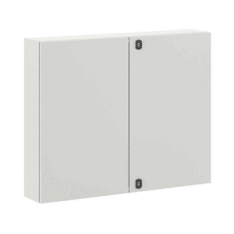 Навесные корпуса STE предназначены для систем автоматизации и распределения электроэнергии. Корпус, дверь, фланец STE изготавливаются из стали толщиной 1,5 мм с атмосферостойким порошковым покрытием, цвет RAL7035. Монтажная плата - из оцинкованной стали 1,8 мм. Корпуса выполнены по технологии сварки из единого листа металла, что обеспечивает высокую нагрузочную способность и защиту от вибраций. Степень защиты IP55, ударопрочность IK10, сейсмостойкость 9 баллов по шкале MSK-64, климатическое исполнение УХЛ1, ОМ2, ОМ3, группу горючести согласно Г1. Комплект поставки: корпус, двустворчатая дверь, монтажная плата, дверные рейки, поворотный замок 2 шт., сплошной фланец для ввода кабеля 2 шт., комплект заземления с проводами заземления. Габариты 800x1000x200 (ШхВхГ) мм.