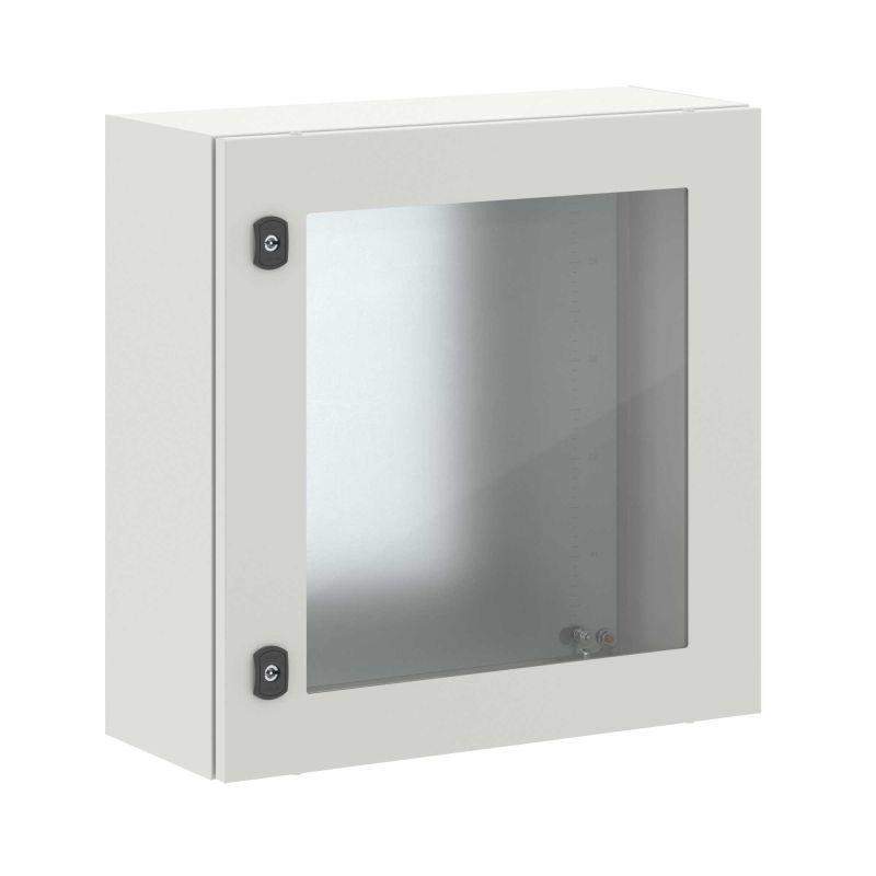 Навесные корпуса STEX предназначены для систем автоматизации и распределения электроэнергии. Корпус, дверь, фланец STEX изготавливаются из стали толщиной 1,5 мм с атмосферостойким порошковым покрытием, цвет RAL7035. Монтажная плата - из оцинкованной стали 1,8 мм. Безопасное закаленное стекло толщиной 5 мм. Корпуса выполнены по технологии сварки из единого листа металла, что обеспечивает высокую нагрузочную способность и защиту от вибраций. Степень защиты IP66, ударопрочность IK10, сейсмостойкость 9 баллов по шкале MSK-64, климатическое исполнение УХЛ1, ОМ2, ОМ3, группа горючести Г1. Комплект поставки: корпус, дверь реверсивная, монтажная плата, дверные рейки, поворотный замок 2 шт., сплошной фланец для ввода кабеля 1 шт., комплект заземления с проводами заземления. Габариты 600x600x250 (ШхВхГ) мм.