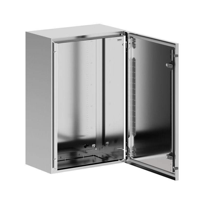 Навесные корпуса STH предназначены для систем автоматизации и распределения электроэнергии, эксплуатирующихся в коррозионно-активных средах - области с высокой влажностью, соляной и морской туман, химически агрессивные среды, открытые пространства с высокой концентрацией загрязняющих веществ. Корпус, дверь, фланец изготавливаются из нержавеющей стали AISI 304 (1.4301) толщиной 1,5 мм. Литой уплотнитель двери и фланца - вспененный силикон. Монтажная плата - из оцинкованной стали толщиной 1,8 мм. Степень защиты IP66, ударопрочность IK10, сейсмостойкость 9 баллов по шкале MSK-64, климатическое исполнение УХЛ1, ОМ2, ОМ3, группа горючести НГ. Комплект поставки: корпус, дверь реверсивная, монтажная плата, дверные рейки, поворотный замок 2 шт., сплошной фланец для ввода кабеля 1 шт., комплект заземления без проводов. Габариты 600x400x250 (ВхШхГ) мм.