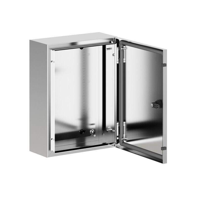 Навесные корпуса STH предназначены для систем автоматизации и распределения электроэнергии, эксплуатирующихся в коррозионно-активных средах - области с высокой влажностью, соляной и морской туман, химически агрессивные среды, открытые пространства с высокой концентрацией загрязняющих веществ. Корпус, дверь изготавливаются из нержавеющей стали AISI 304 (1.4301) толщиной 1,5 мм. Литой уплотнитель двери - вспененный силикон. Монтажная плата - из оцинкованной стали толщиной 1,8 мм. Степень защиты IP66, ударопрочность IK10, сейсмостойкость 9 баллов по шкале MSK-64, климатическое исполнение УХЛ1, ОМ2, ОМ3, группа горючести НГ. Комплект поставки: корпус, дверь реверсивная, монтажная плата, поворотный замок 1 шт., комплект заземления без проводов. Габариты 400x300x150 (ВхШхГ) мм.