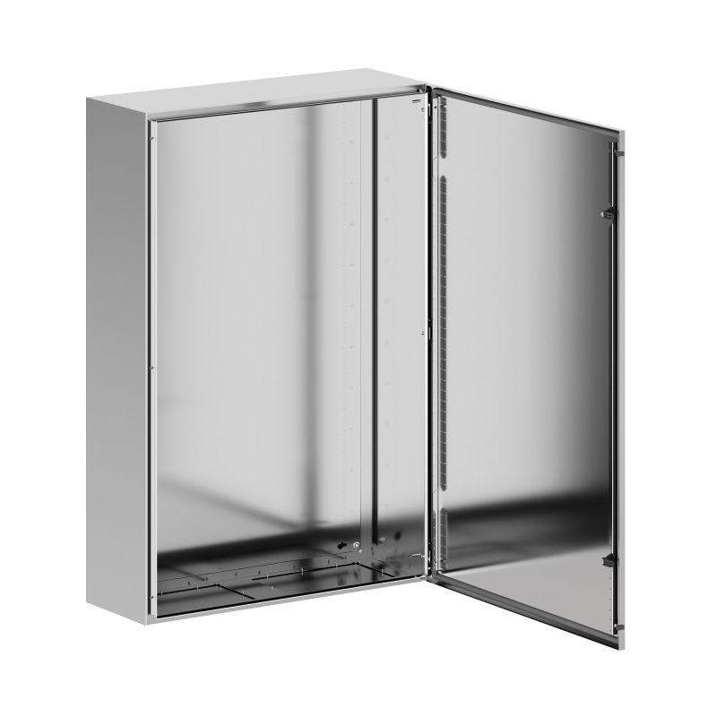 Навесные корпуса серии STH предназначены для систем автоматизации и распределения электроэнергии, эксплуатирующихся в коррозионно-активных средах - области с высокой влажностью, соляной и морской туман, химически агрессивные среды, открытые пространства с высокой концентрацией загрязняющих веществ. Корпус, дверь, фланец изготавливаются из нержавеющей стали AISI 316 (1.4401) толщиной 1,5 мм. Литой уплотнитель двери и фланца - вспененный силикон. Монтажная плата изготовлена из оцинкованной стали толщиной 2,5 мм. Степень защиты IP66, ударопрочность IK10, сейсмостойкость 9 баллов по шкале MSK-64, климатическое исполнение УХЛ1, ОМ2, ОМ3, группа горючести НГ. Комплект поставки: корпус, дверь реверсивная, монтажная плата с двунаправленной разметкой, поворотный замок 2 шт., сплошной фланец для ввода кабеля 2 шт., комплект заземления без проводов, дверные рейки. Габариты 1200x800x300 (ВхШхГ) мм.