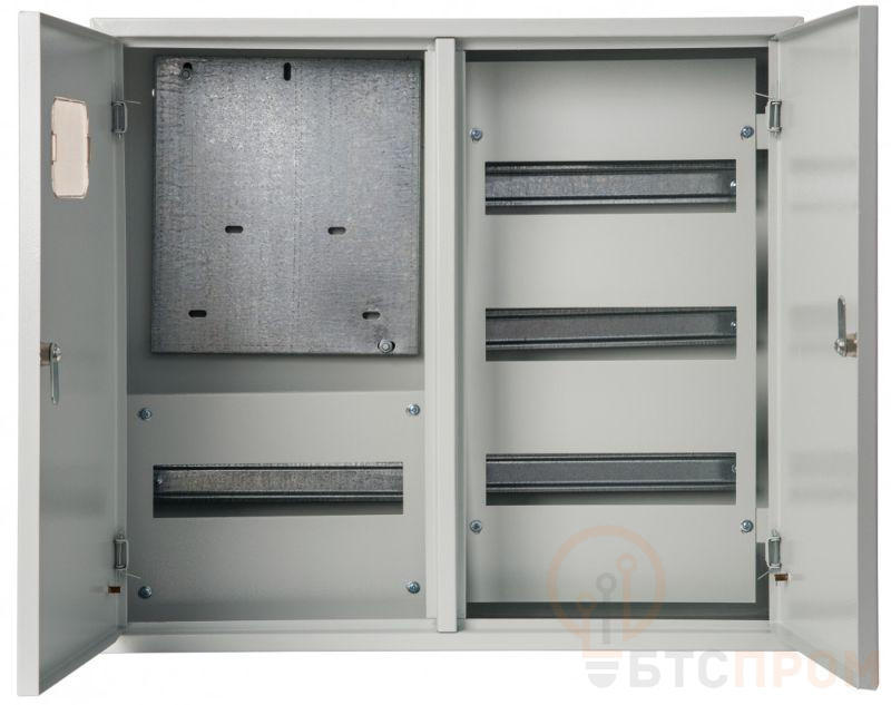 Щит распределительный учетный серии ЩРУН Dekraft; навесной; для трехфазного счетчика; номинальный ток до 125 А; исполнение – 48 мод. х 18 мм, 3+1 ряда; ВхШхГ - 520х585х160 мм; материал – сталь; цвет - серый (RAL 7032); степень защиты - IP31. Щиты ЩРУН имеют монтажную панель для крепления счетчика, DIN-рейки для модульной аппаратуры, элементы крепления шин N и PE, болты заземления на дверце и на корпусе, дверь с замком и ключом. Ввод кабелей для всех щитов осуществляется сверху или снизу.