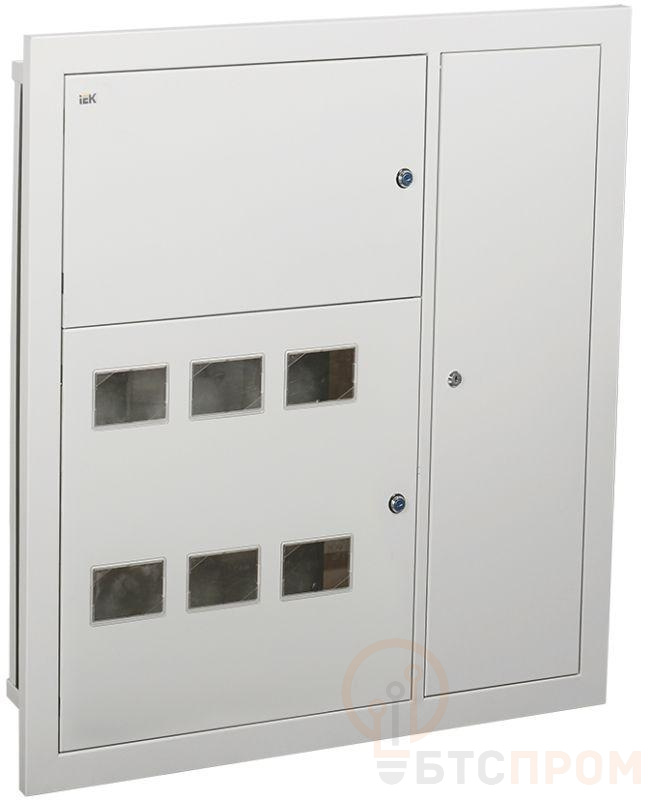 Используется для сборки этажного распределительного щита на 6 квартир, предназначенного для приема и распределения электроэнергии в жилых и общественных зданиях, а также для защиты отходящих линий при перегрузках и коротких замыканиях. Сварной металлический корпус состоит из трех отсеков: вводно-учетного, распределительного, отсека слаботочного оборудования. В вводно-учетном и распределительном отсеках размещены DIN-рейки для крепления счетчиков (по количеству квартир). В распределительном отсеке установлены DIN-рейки для аппаратов групповых линий и рейка для установки шин N и РЕ. Отсек укомплектован оперативной панелью. Отсек слаботочного оборудования снабжен перфорированными профилями для прокладки теле- и радиосетей, телефонных линий, сетей охранной сигнализации, домофонов и т.п. Для обеспечения пожарной безопасности между слаботочным и силовым отсеками расположена разделительная перегородка.