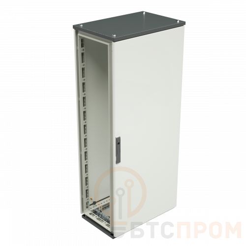Комплекты напольных корпусов CQE N предназначены для построения систем автоматизации, управления, распределения энергии. Корпус поставляется в разборном виде и состоит из каркаса (крыша, основание, стойки), задней панели и одностворчатой двери. Боковые панели не входят в комплект и приобретаются отдельно. Комплекты оптимизируют процесс закупки, позволяя заказывать полный набор компонентов под единым артикулом. Угол открытия двери – 130°. Степень защиты при использовании стандартных боковых панелей – IP55, со сплошным дном — IP65. Дверь оснащена накладкой под ключ с двойной бородкой. Каркас изготовлен из листовой стали 1,5 мм с порошковым покрытием. Ребра жесткости обеспечивают несущую способность до 1000 кг. Размер (ВхШхГ), мм: 1800х1000х600.