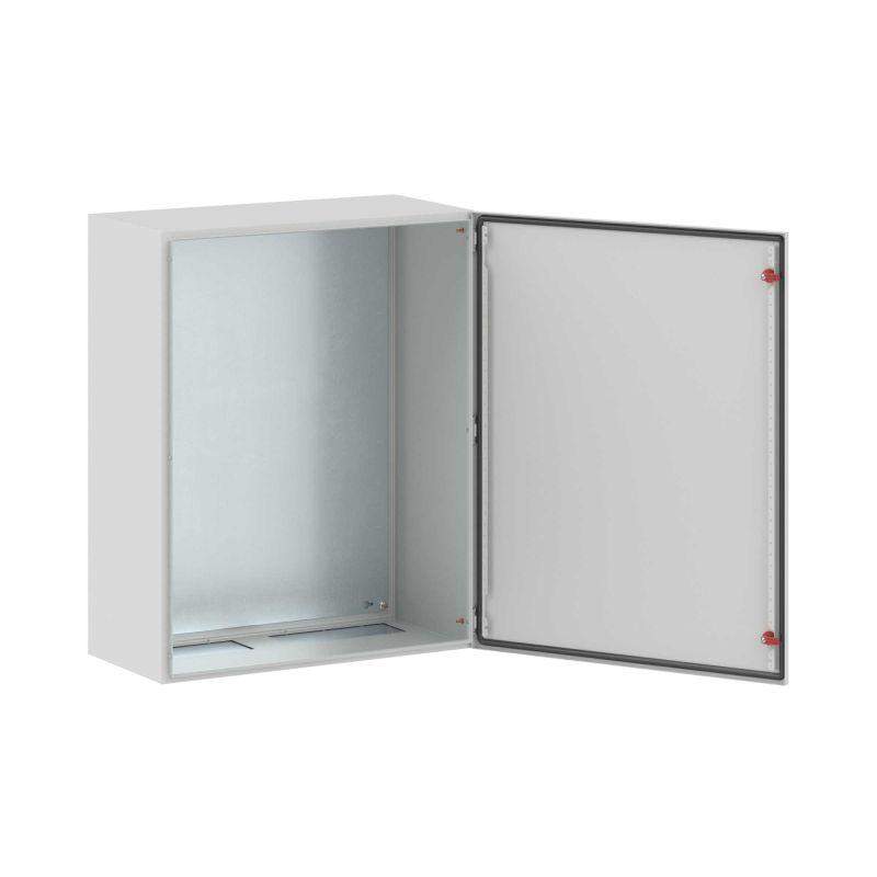Навесные корпуса серии ST предназначены для систем автоматизации и распределения электроэнергии. Корпус, фланец изготавливаются из стали толщиной 1,2 мм, дверь из стали толщиной 1,5 мм с атмосферостойким порошковым покрытием, цвет RAL7035. Монтажная плата - из оцинкованной стали толщиной 1,8 мм. Степень защиты IP66, ударопрочность IK10, сейсмостойкость 9 баллов по шкале MSK-64, климатическое исполнение УХЛ1, ОМ2, ОМ3, группа горючести Г1. Комплект поставки: корпус, дверь реверсивная, монтажная плата с двунаправленной разметкой, дверные рейки, поворотный замок 2 шт., сплошной фланец для ввода кабеля 2 шт., комплект заземления без проводов, монтажные аксессуары. Габариты 1000x800x400 (ВхШхГ) мм.