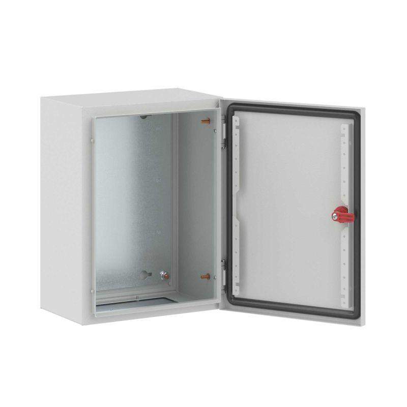 Навесные корпуса ST предназначены для систем автоматизации и распределения электроэнергии. Корпус, дверь, фланец изготавливаются из стали толщиной 1,2 мм с атмосферостойким порошковым покрытием, цвет RAL7035. Монтажная плата - из оцинкованной стали толщиной 1,8 мм. Степень защиты IP66, ударопрочность IK10, сейсмостойкость 9 баллов по шкале MSK-64, климатическое исполнение УХЛ1, ОМ2, ОМ3, группа горючести Г1. Комплект поставки: корпус, дверь реверсивная, монтажная плата с двунаправленной разметкой, поворотный замок 1 шт., сплошной фланец для ввода кабеля 1 шт., комплект заземления без проводов, монтажные аксессуары. Габариты 400x300x200 (ВхШхГ) мм.