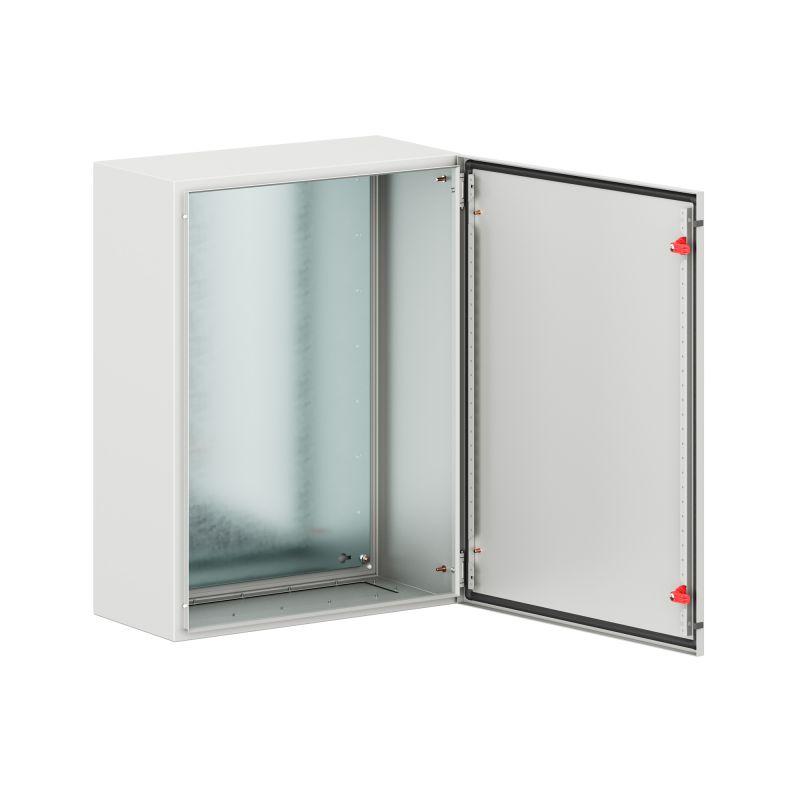 Навесные корпуса серии ST предназначены для систем автоматизации и распределения электроэнергии. Корпус, фланец изготавливаются из стали толщиной 1,2 мм, дверь из стали толщиной 1,5 мм с атмосферостойким порошковым покрытием, цвет RAL7035. Монтажная плата - из оцинкованной стали толщиной 1,8 мм. Степень защиты IP66, ударопрочность IK10, сейсмостойкость 9 баллов по шкале MSK-64, климатическое исполнение УХЛ1, ОМ2, ОМ3, группа горючести Г1. Комплект поставки: корпус, дверь реверсивная, монтажная плата с двунаправленной разметкой, дверные рейки, поворотный замок 2 шт., сплошной фланец для ввода кабеля 1 шт., комплект заземления без проводов, монтажные аксессуары. Габариты 800x600x300 (ВхШхГ) мм.