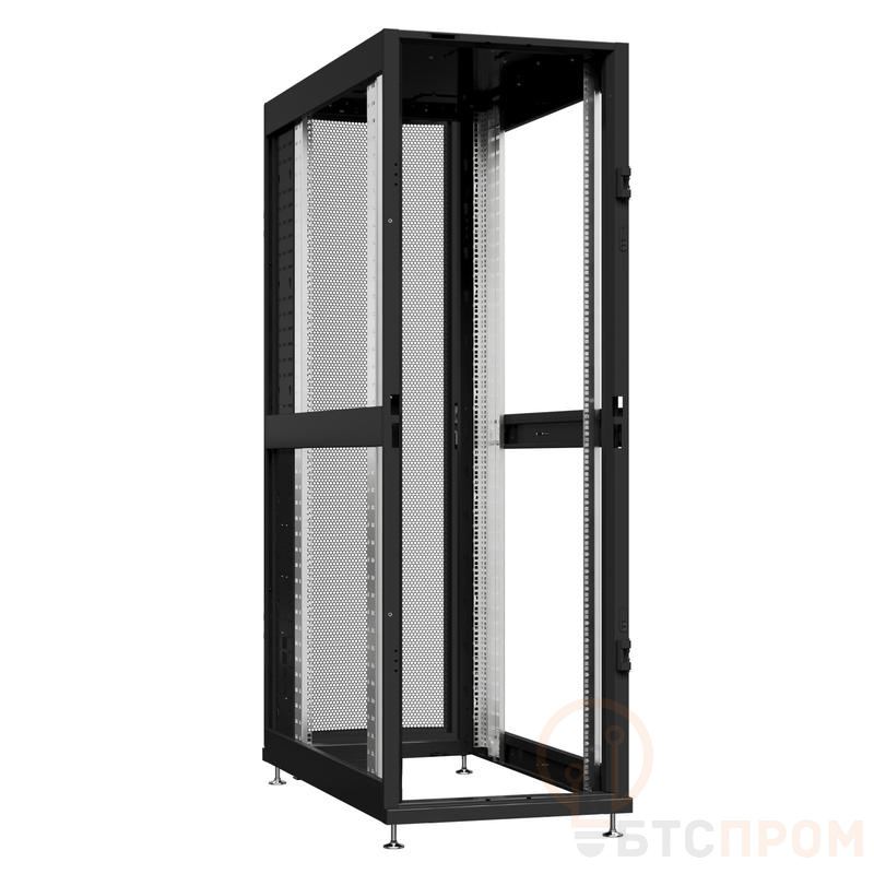 Конструкция шкафа выполнена из высококачественной холоднокатаной стали, что гарантирует его прочность и долговечность. Полная комплектация включает перфорированные переднюю и заднюю двери для оптимального воздухообмена, боковые панели, регулируемые по глубине монтажные стойки с шагом крепления 1U, а также вентиляционную панель сверху. Стандартная глубина 1070 мм идеально подходит для размещения современного оборудования, включая глубинное.