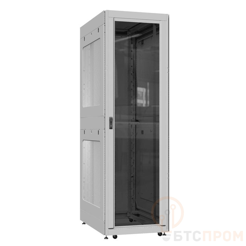 Конструкция шкафа, выполненная из высококачественной холоднокатаной стали, отличается повышенной прочностью и устойчивостью. Регулируемые по глубине монтажные стойки с универсальной перфорацией позволяют гибко размещать серверы, коммутаторы, системы хранения данных и другое оборудование стандарта 19". Дверцы шкафа, доступные в вариантах со стеклянной или перфорированной панелью, обеспечивают удобный доступ и контроль, а также способствуют эффективному воздухообмену.