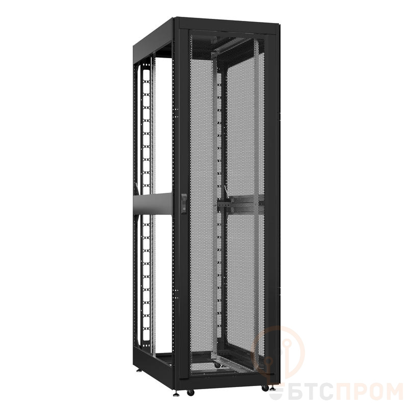 Конструкция шкафа, выполненная из высококачественной холоднокатаной стали, отличается повышенной прочностью и устойчивостью. Регулируемые перфорированные дверцы (передняя и задняя) и боковые панели способствуют оптимальной циркуляции воздуха. Шкаф оснащен перфорированными шасси, что позволяет гибко монтировать оборудование различной глубины. В стандартную комплектацию входят вентиляционные панели, комплект для фиксации к полу и боковые панели.
