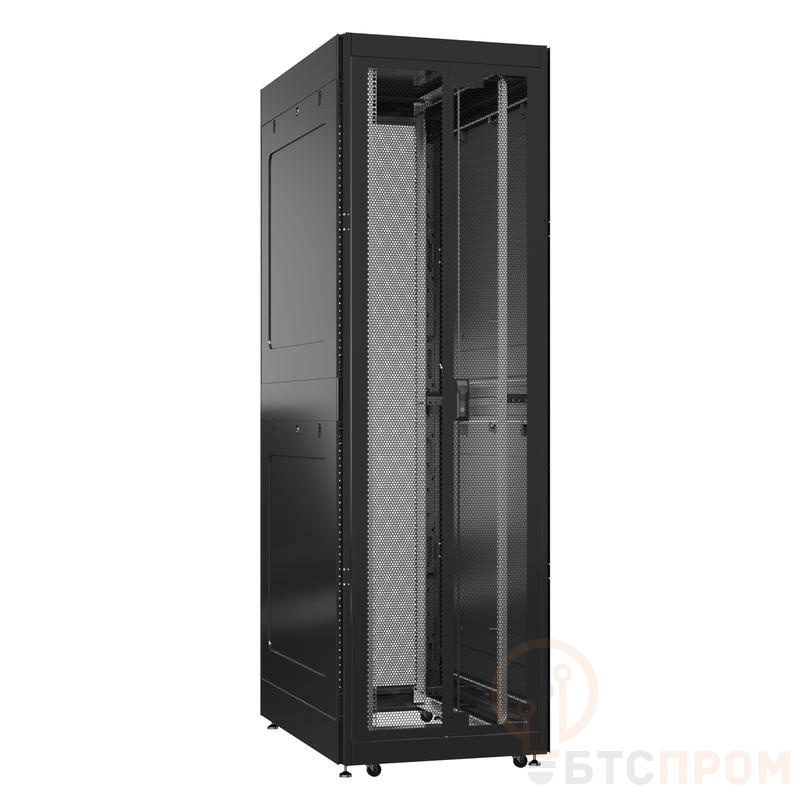 Конструкция шкафа отличается высокой прочностью и устойчивостью благодаря цельносварному несущему каркасу, выдерживающему значительные нагрузки. Глубина 1200 мм оптимальна для современного оборудования, а перфорация на дверях (как передних, так и задних) обеспечивает эффективную вентиляцию для отвода избыточного тепла. Шкаф комплектуется боковыми панелями, регулируемыми по глубине монтажными стойками, кабельным менеджментом и системой заземления.