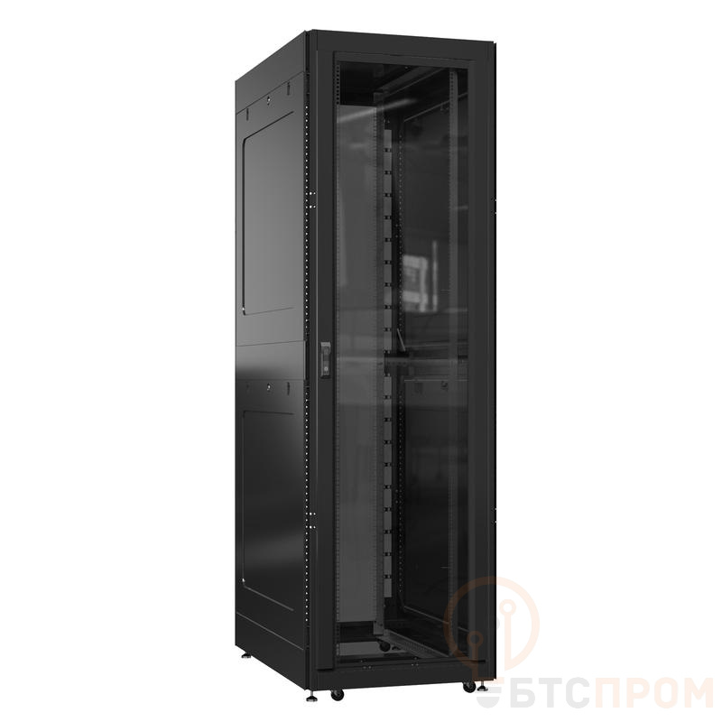 Конструкция шкафа, выполненная из холоднокатаной стали, отличается высокой прочностью и долговечностью. Перфорированные дверцы (как передняя, так и задняя) способствуют оптимальной циркуляции воздуха, предотвращая перегрев компонентов. Модель оснащена регулируемыми по глубине монтажными стойками, надежной системой замков и вентиляционными панелями.