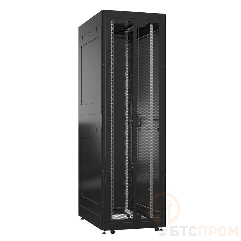 Конструкция шкафа, выполненная из высококачественной холоднокатаной стали, отличается повышенной прочностью и долговечностью. Перфорированные дверцы (как передняя, так и задняя) способствуют эффективному пассивному охлаждению, обеспечивая постоянный и равномерный воздухообмен. Модель оснащена регулируемыми по глубине монтажными стойками, что позволяет гибко настраивать пространство под любое оборудование.
